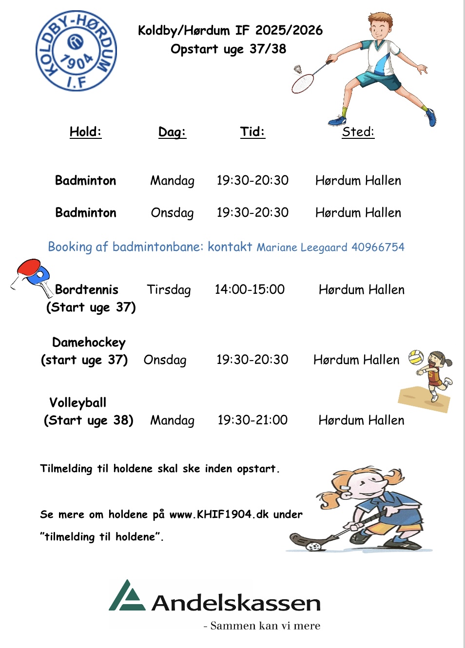 Badminton, Bordtennis, Volleyball og Hockey i Hørdum Hallen 25/26